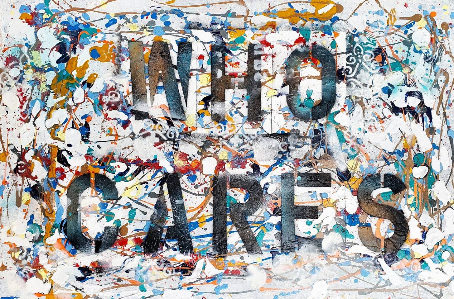 The header image is the painting ‘Who Cares’ by Los Angeles-based artist Sonia Mirzaei (permission requested).